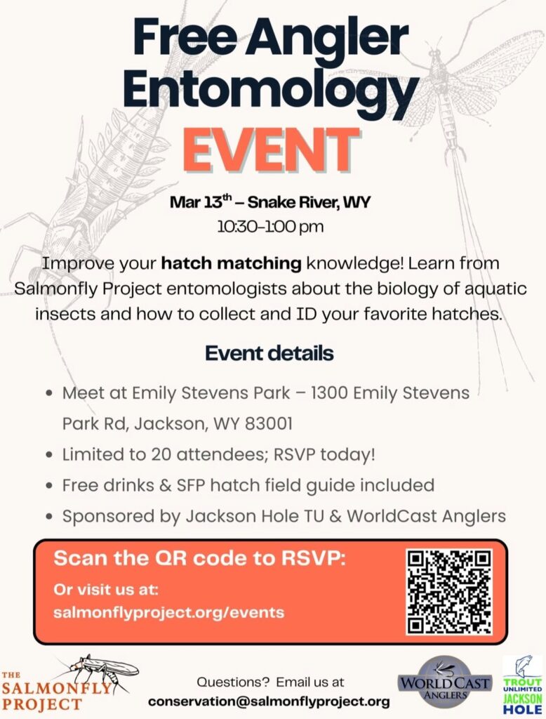 Join The Salmonfly Project, WorldCast Anglers, and JHTU on the banks of the upper Snake River for a free entomology clinic!